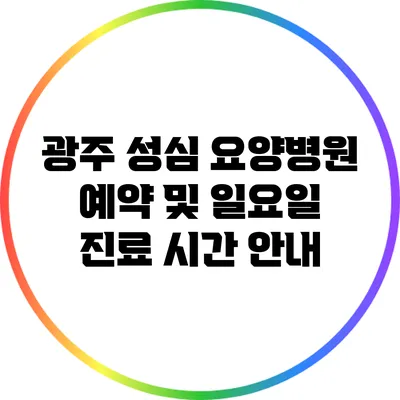 광주 성심 요양병원 예약 및 일요일 진료 시간 안내