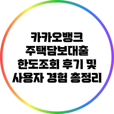 카카오뱅크 주택담보대출 한도조회: 후기 및 사용자 경험 총정리