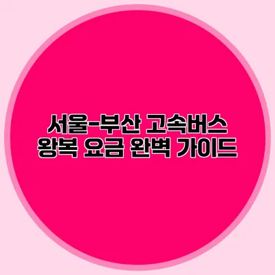 서울-부산 고속버스 왕복 요금 완벽 가이드