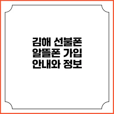 김해 선불폰 알뜰폰 가입 안내와 정보