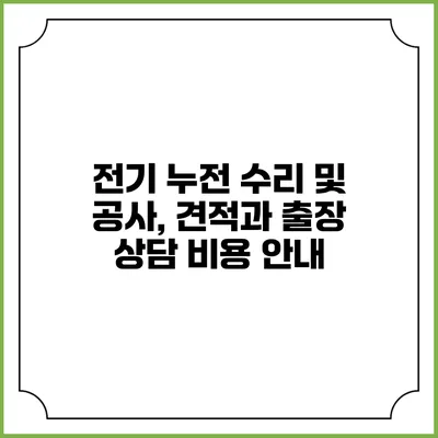 전기 누전 문제는 일상 생활에서 빈번하게 발생할 수 있는 심각한 문제예요. 누전이 발생하면 전기 기기의 고장뿐만 아니라 화재의 위험이 커질 수 있기에 이를 신속하게 점검하고 수리하는 것이 중요해요. 이번 블로그 포스트에서는 전기 누전의 원인, 수리 및 공사 과정, 견적과 출장 상담 비용에 대해 자세히 알아보려고 해요.