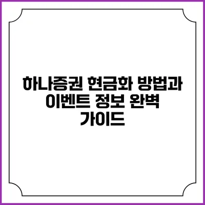 하나증권 현금화 방법과 이벤트 정보 완벽 가이드